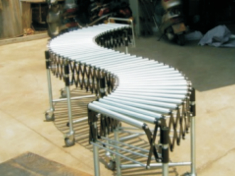 单辊伸缩机是在普通的辊筒输送机上增加了伸缩机构,使得输送机可以在长度方向上自由伸缩。伸缩式辊筒输送机是利用可伸缩的组件做机架的输送机,机体可自由变向,改变任意角度,支腿高度可以调节,下部设有脚轮可以移动,并可按需要形成直段和圆弧段,适用于需要灵活布置的移动式无动力输送机,脚轮可带刹车,伸长长度可限位,转动件有单排辊筒,双排辊筒。作为单台至少二个单元,以一组伸缩片为一单元。广泛应用于各行业的成品包装箱、周转箱的输送。